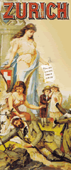 Hacia el cambio de siglo la compañía Zurich también difundió en carteles esta alegoría, que mostraba con precisión cómo iba a percibir la opinión pública el mundo del seguro: la diosa magnánima congrega a sus pies a quienes buscan ayuda y les ofrece, pólizas en la mano, protección y cobertura.