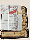 El "ordenador portátil" de los años treinta: la agenda de un empleado del servicio externo de la Zurich con las tarifas resumidas y notas sobre clientes.