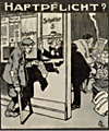 Caricatura utilizada en la apasionada contienda electoral de 1912 en torno a la introducción del seguro público de accidentes (SUVA). Finalmente el pueblo votó contra la oposición de los aseguradores privados (¿Responsabilidad civil?).